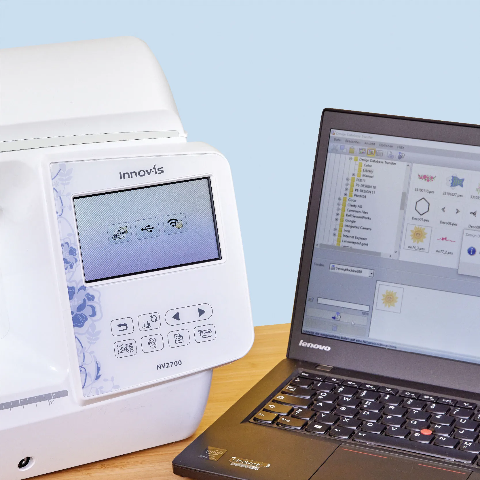 Bilgisayarınızdan, nakış tasarımlarınızı makinenize kablosuz olarak gönderebilirsiniz.